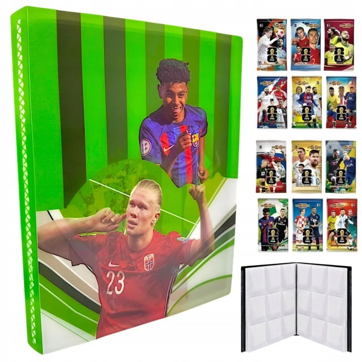 Kompletny zestaw dla każdego fana futbolu i kolekcjonowania! W skład oferty wchodzi duży album-segregator mieszczący aż 432 karty piłkarskie oraz 80 kart kolekcjonerskich GRATIS – idealny pakiet na start lub do rozbudowy kolekcji.
