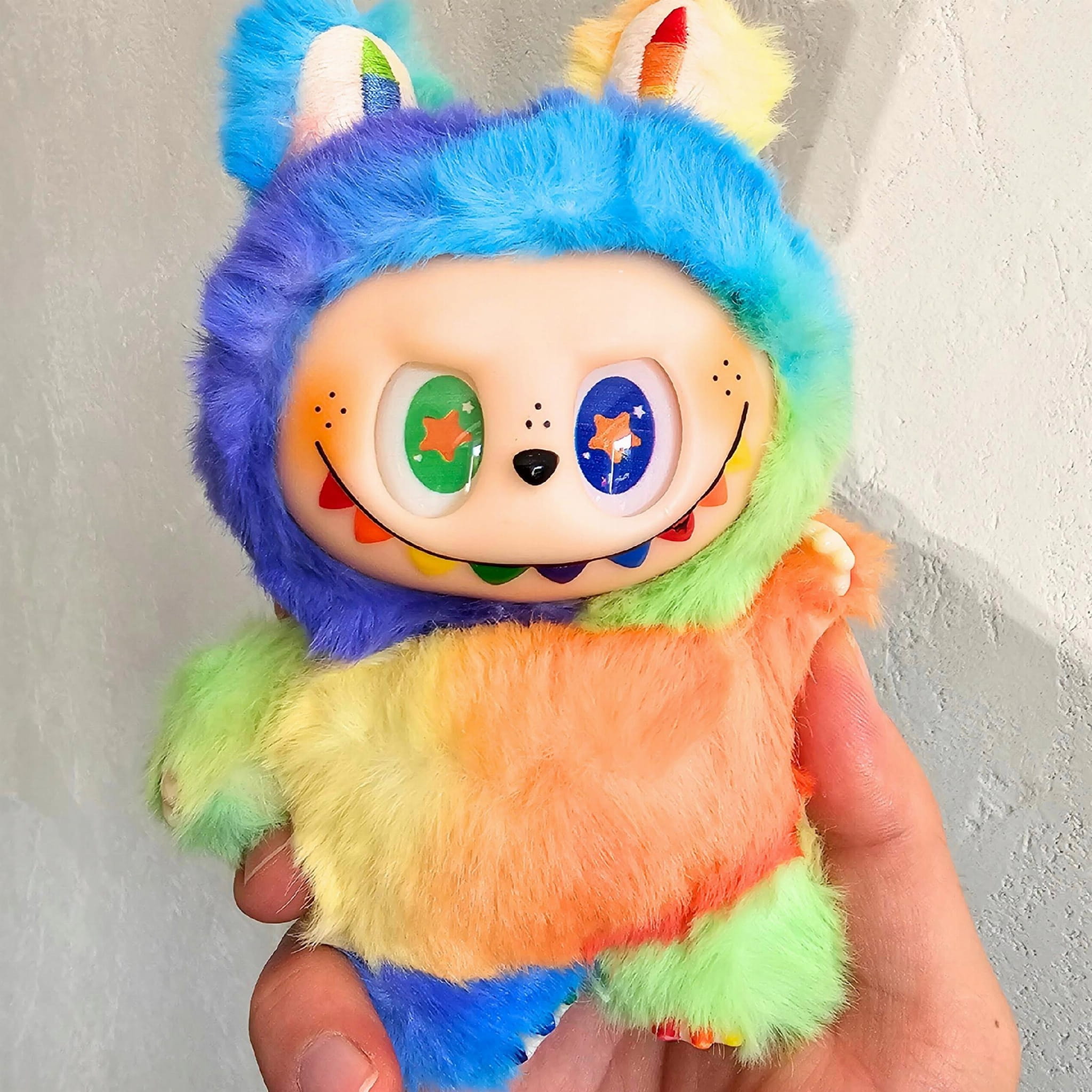 Uroczo niepokorna, miękka i pełna charakteru – maskotka to must-have dla fanów unikatowych zabawek i akcesoriów! Wykonana z puszystego materiału, przypomina rozkosznego potworka z uszami królika i hipnotyzującym uśmiechem pełnym kolorów. Dzięki praktycznemu uchwytowi typu kółko możesz ją z łatwością przypiąć do plecaka, torebki czy nawet do szlufki spodni, tworząc wyjątkowy akcent w codziennej stylizacji.