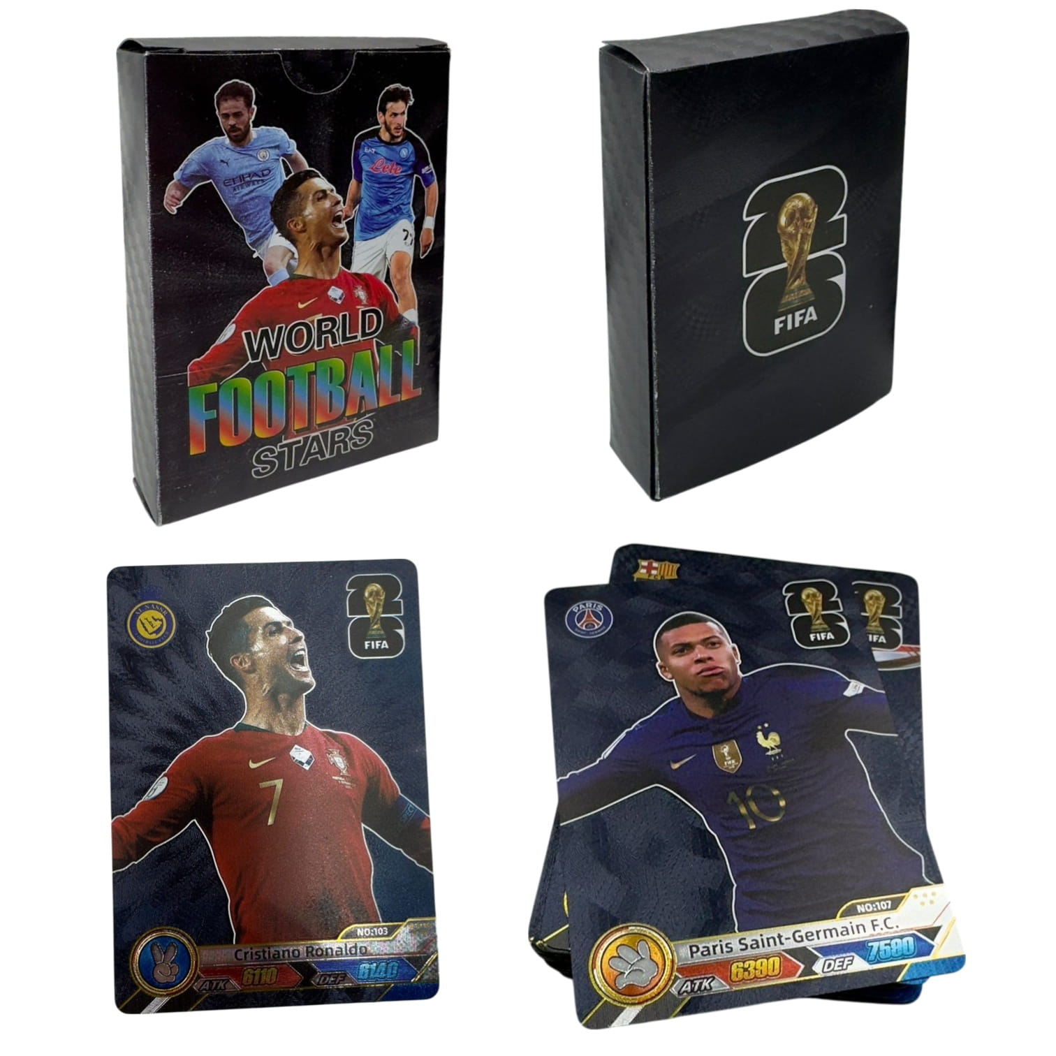 Zestaw Kart Piłkarskich Czarnych to wyjątkowa kolekcja, która wprowadza elegancję i nowoczesność do świata piłki nożnej. W opakowaniu znajduje się 55 kart, każda z nich wyróżnia się stylowym, czarnym wykończeniem, które nadaje jej prestiżowy i tajemniczy charakter.