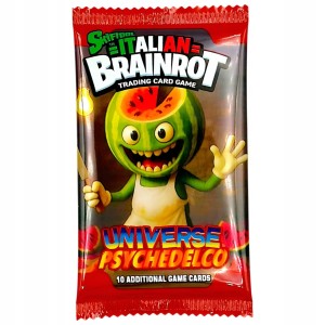 Każdy booster Brainrot Skifidol Italian zawiera 10 losowych kart kolekcjonerskich, zapakowanych w oryginalną, fabrycznie zamkniętą saszetkę. Ilość kart jest stała, natomiast ich rodzaj i grafiki są dobierane losowo.