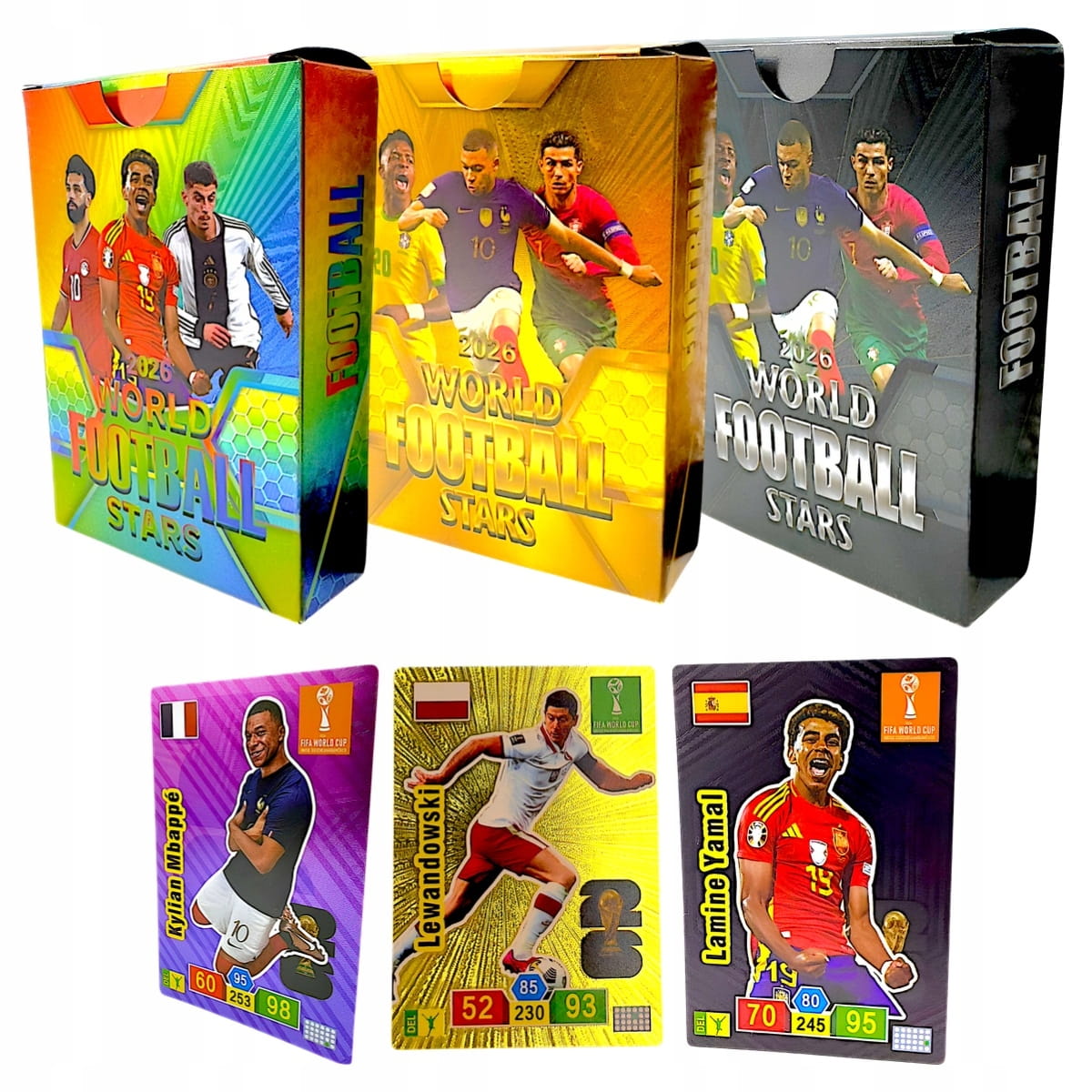 ✅ Postacie piłkarzy: karty przedstawiają legendy piłki nożnej oraz współczesne gwiazdy światowego futbolu.