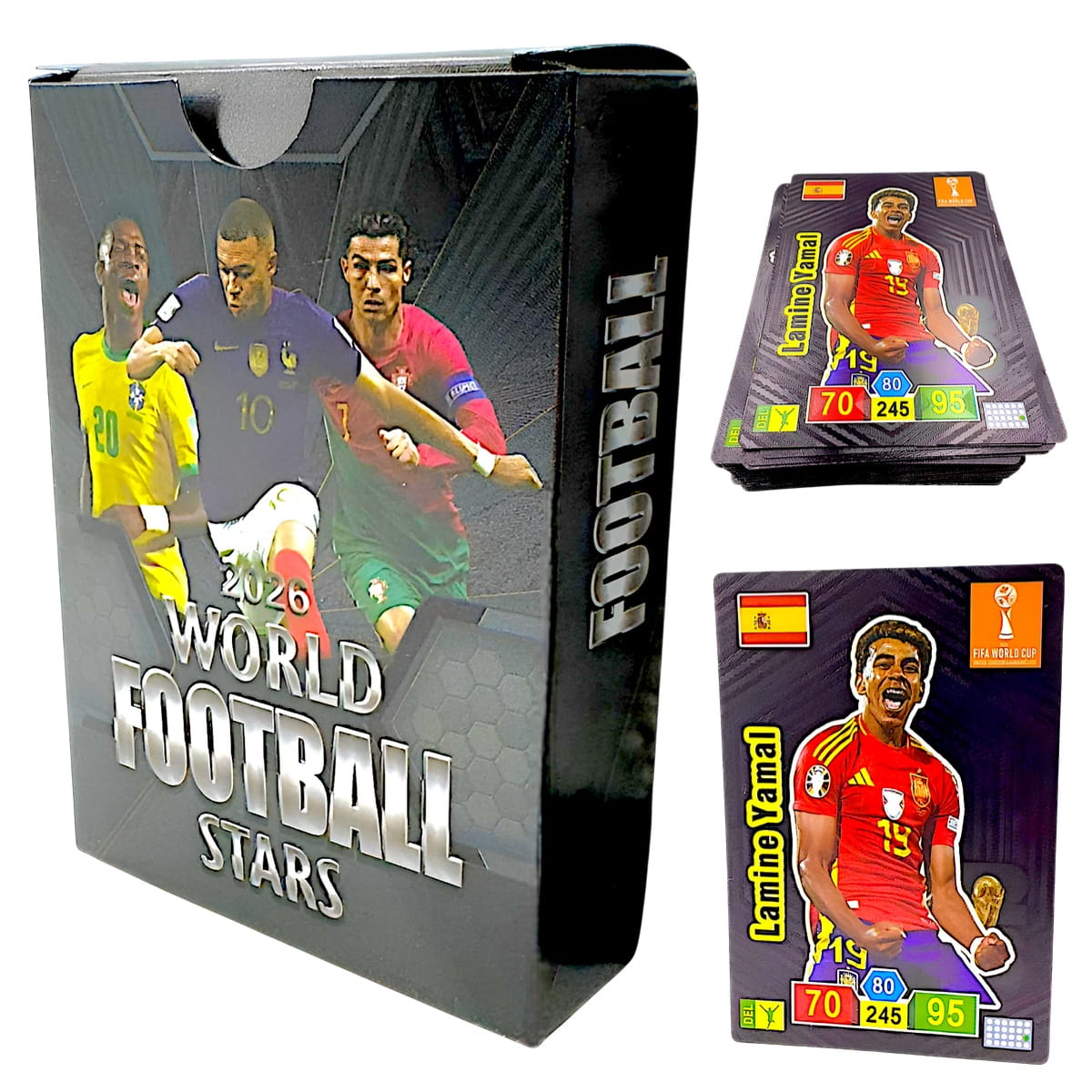 Wzbogać swoją kolekcję o unikalny zestaw złotych, srebrnych, czarnych i tęczowych kart kolekcjonerskich! Idealny wybór dla każdego fana piłki nożnej oraz kolekcjonera! ⚽