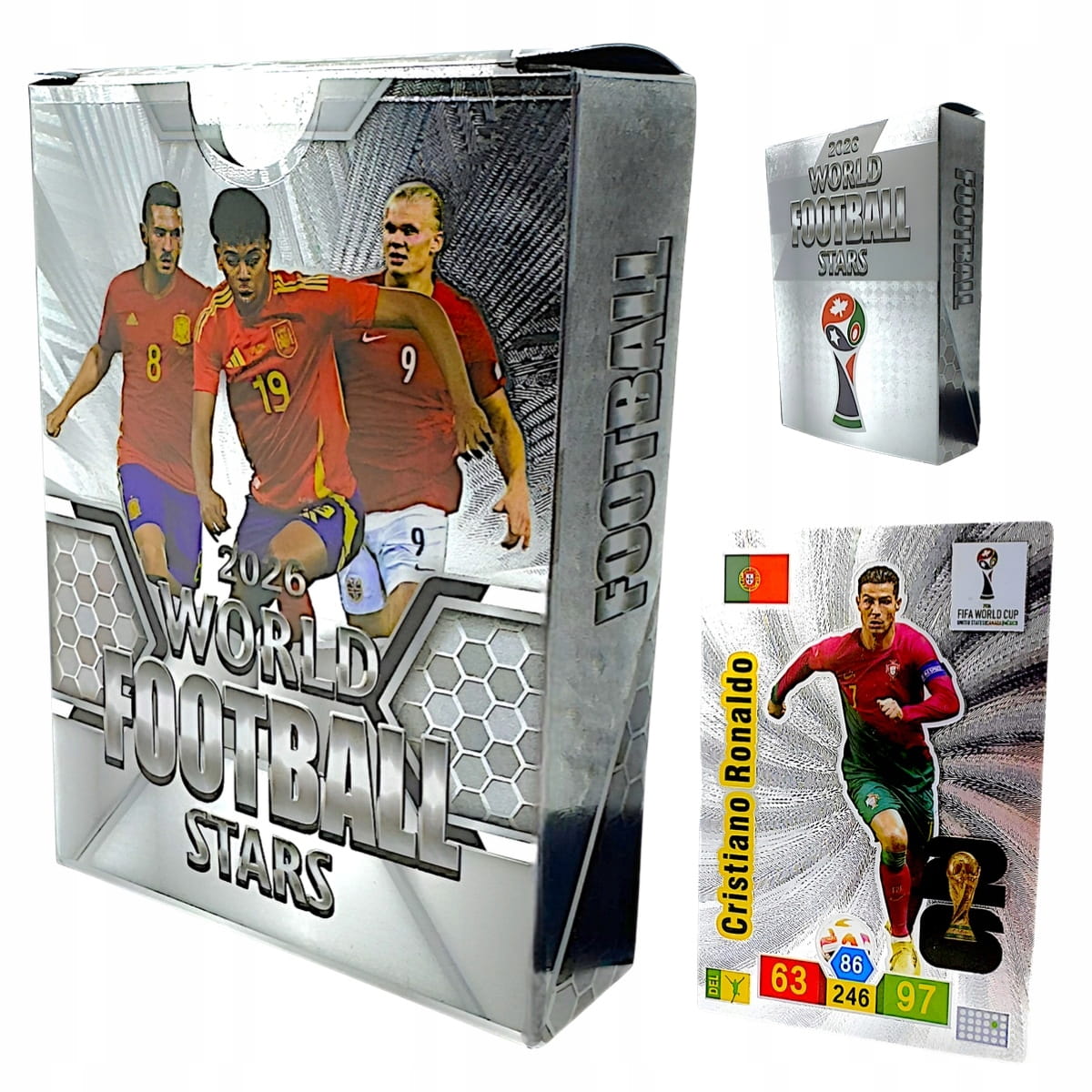 ✅ Postacie piłkarzy: karty przedstawiają legendy piłki nożnej oraz współczesne gwiazdy światowego futbolu.