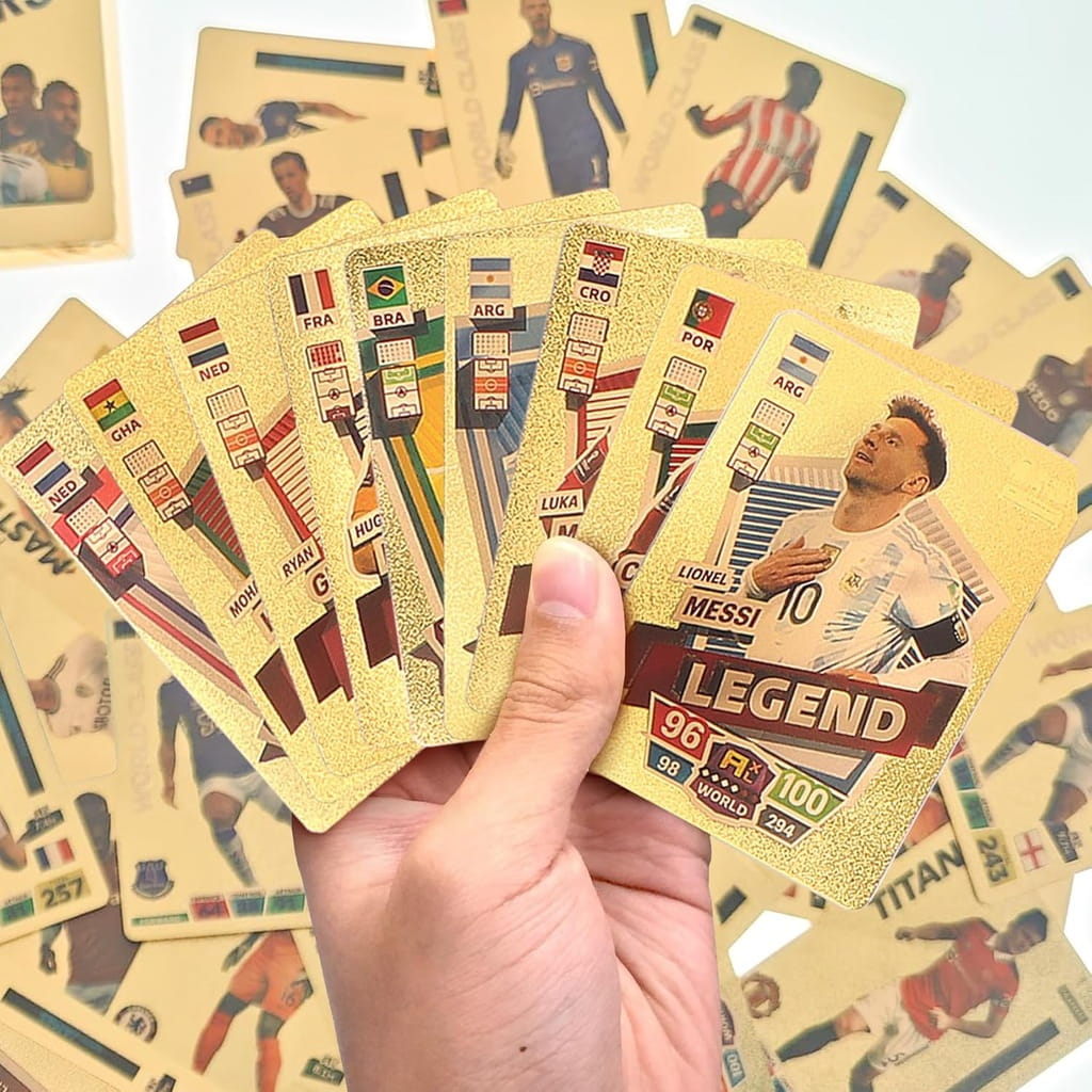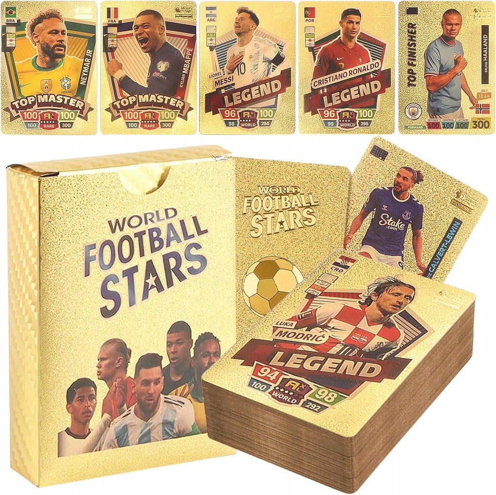 Mega Zestaw Kart Piłkarskich 4w1 – 220 Sztuk: Złote, Czarne, Srebrne i Tęczowe