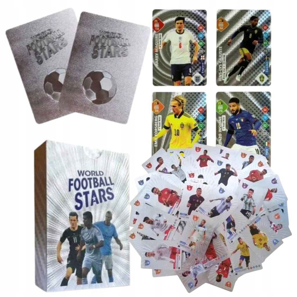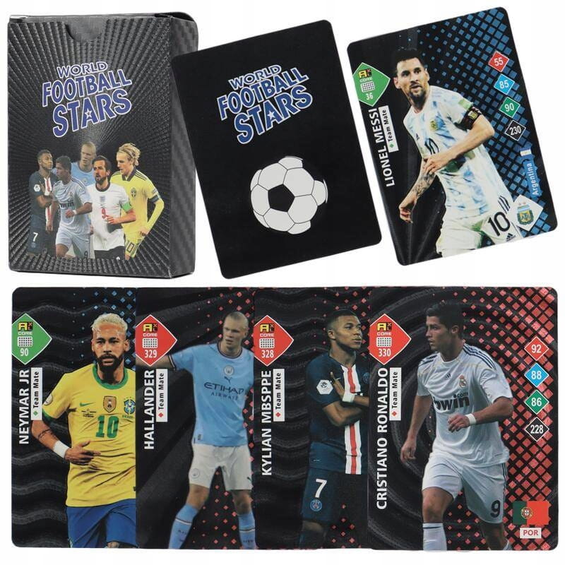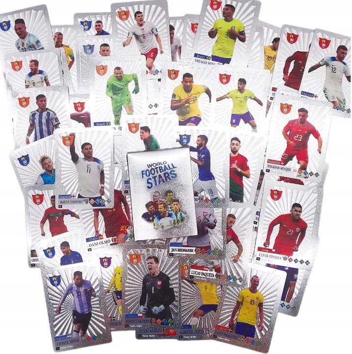2. Jacy piłkarze są na kartach? Zestaw zawiera mix największych gwiazd światowego futbolu. Znajdziesz tu wizerunki topowych graczy z najlepszych lig europejskich oraz reprezentacji narodowych. To plejada sław, którą zna każdy fan piłki.