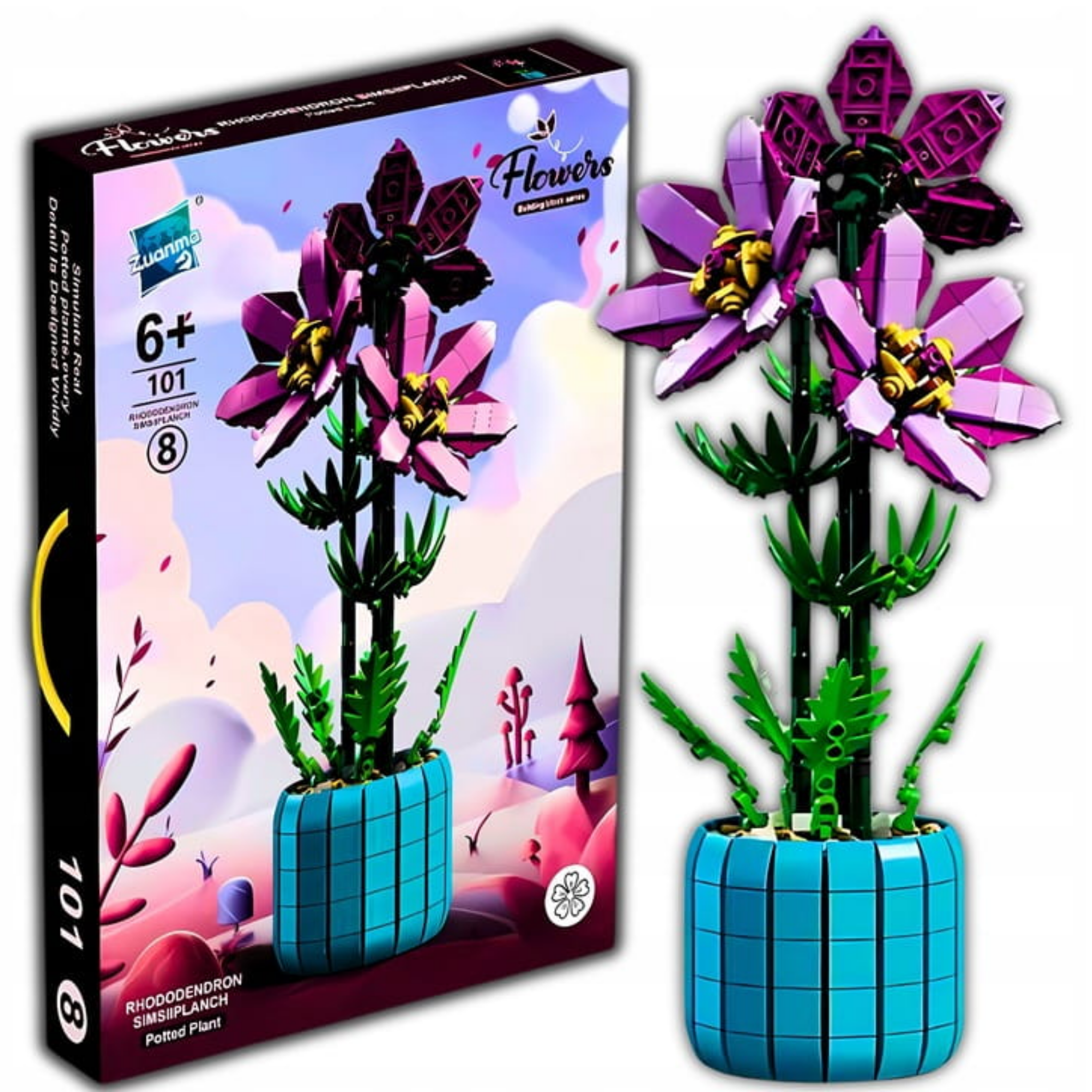 Klocki Konstrukcyjne Kwiaty – Azalia Rododendron w Doniczce (798 Elementów) – Roślina 3D