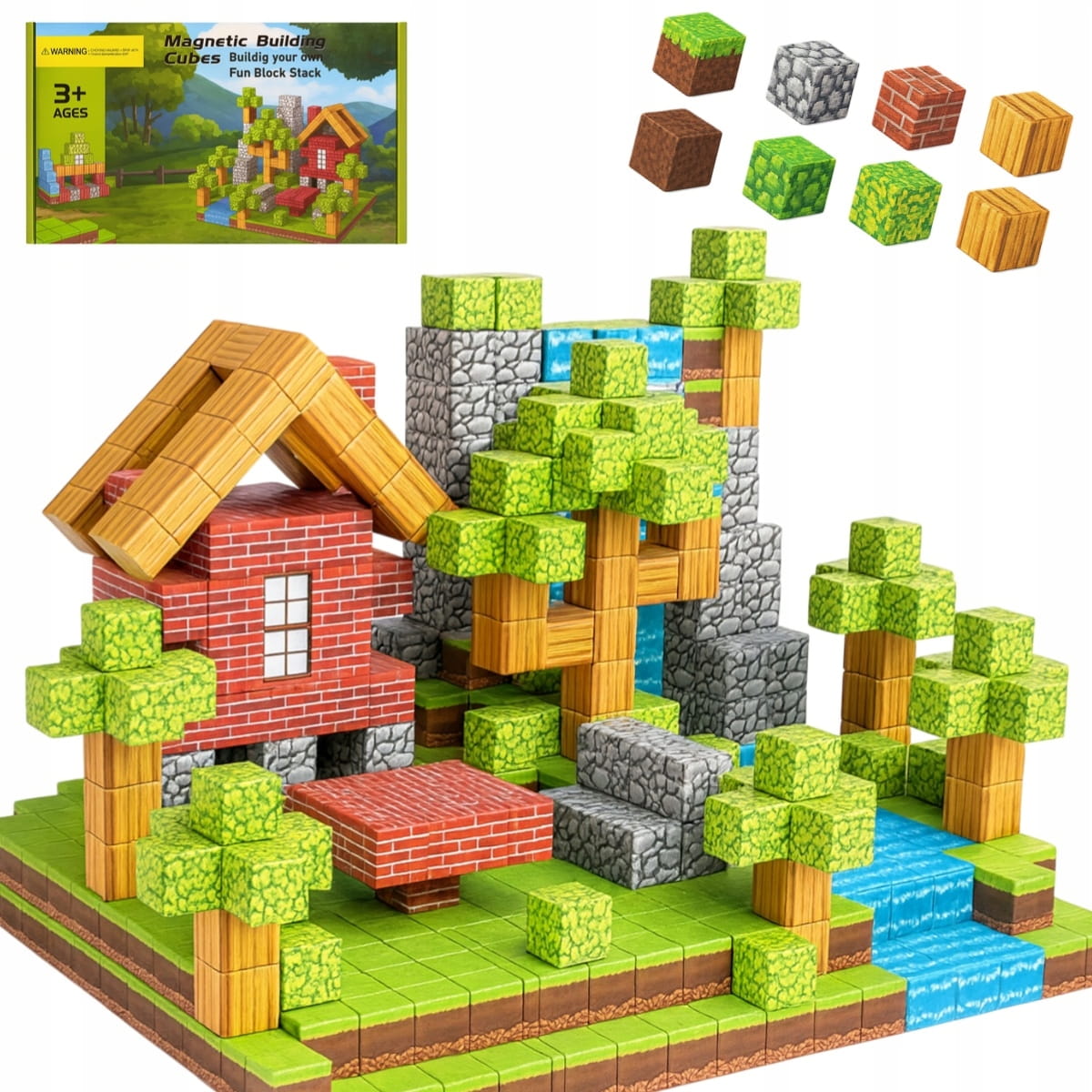 Bezpieczne materiały: Klocki wykonane są z trwałego tworzywa ABS, a magnesy są bezpiecznie ukryte wewnątrz kostek.