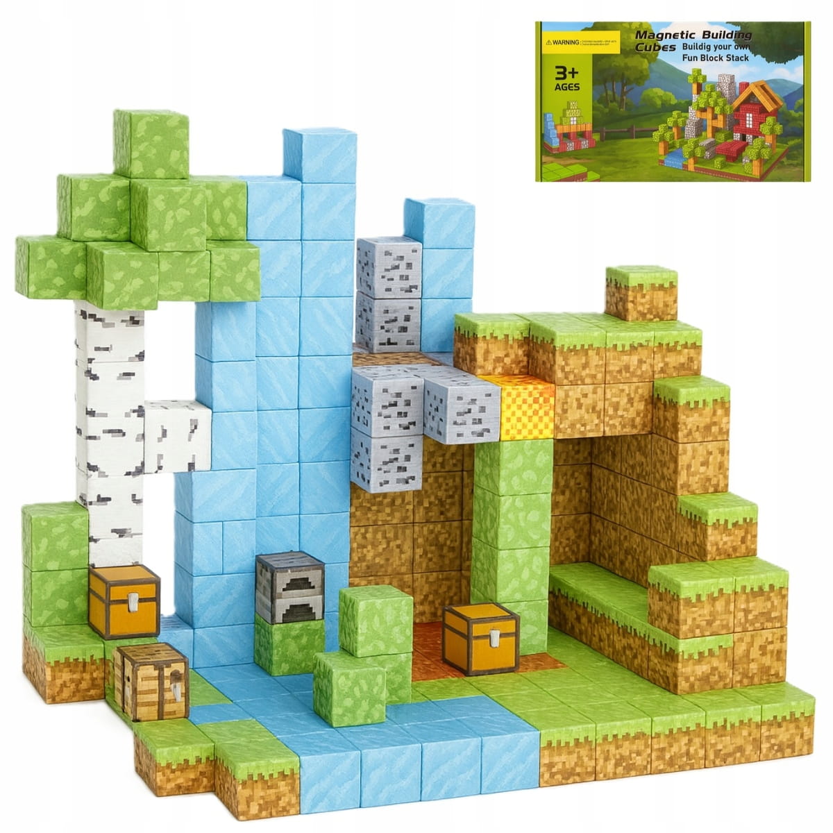 Klocki Magnetyczne Konstrukcyjne – Wielki Zestaw 200 Elementów + 5 Figurek Sześciany Minecraft