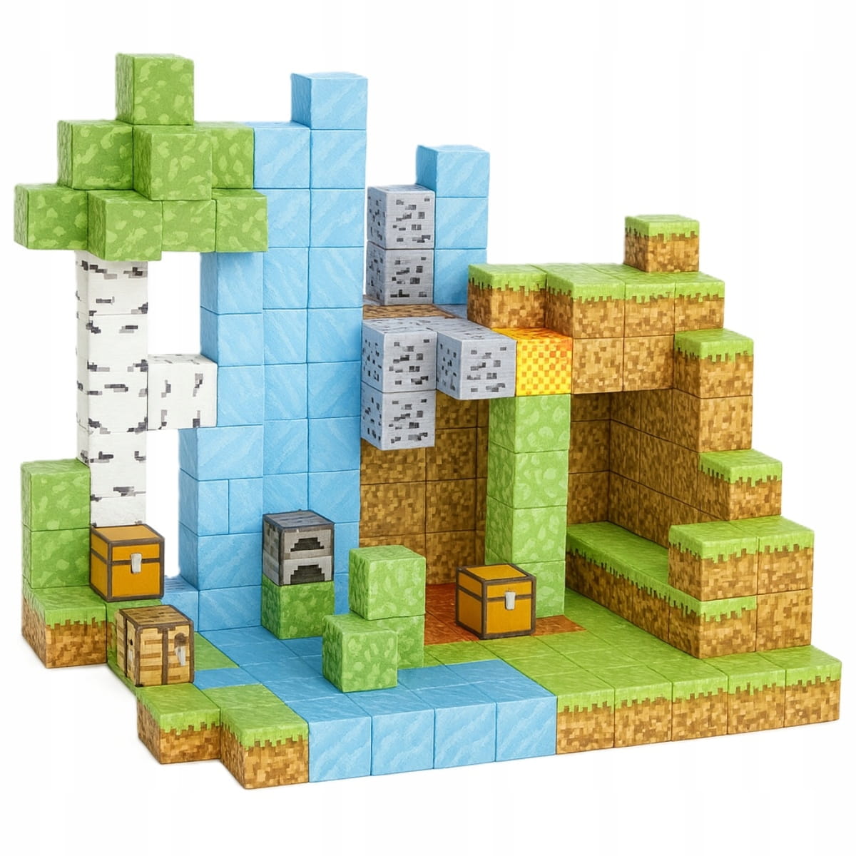 Zestaw został zaprojektowany tak, aby przypominać tekstury znane z popularnych gier komputerowych. Znajdziesz tu bloki imitujące naturalne surowce: drewno, kamień, ziemię, trawę czy cegłę. Dzięki temu dzieci mogą "przenieść" swoje wirtualne projekty na dywan w pokoju. To idealny most między światem cyfrowym a zabawą manualną.