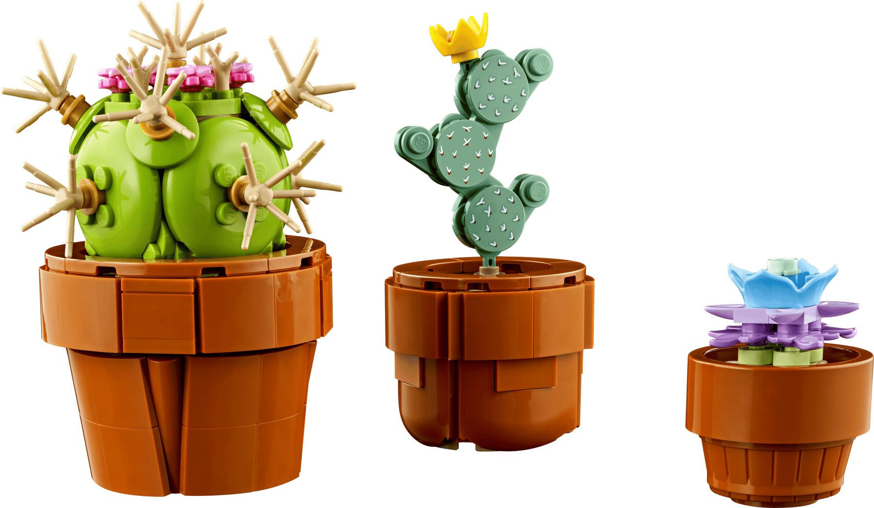 Każda z roślinek umieszczona jest w doniczce w kolorze terakoty (zbudowanej z klocków). Dzięki temu, mimo różnorodności gatunków, cała kolekcja wygląda spójnie i elegancko. Fani LEGO® docenią kreatywne użycie nietypowych elementów – czy zauważysz, że niektóre liście i płatki to tak naprawdę epolety, kapelusze czy muszle z innych zestawów?