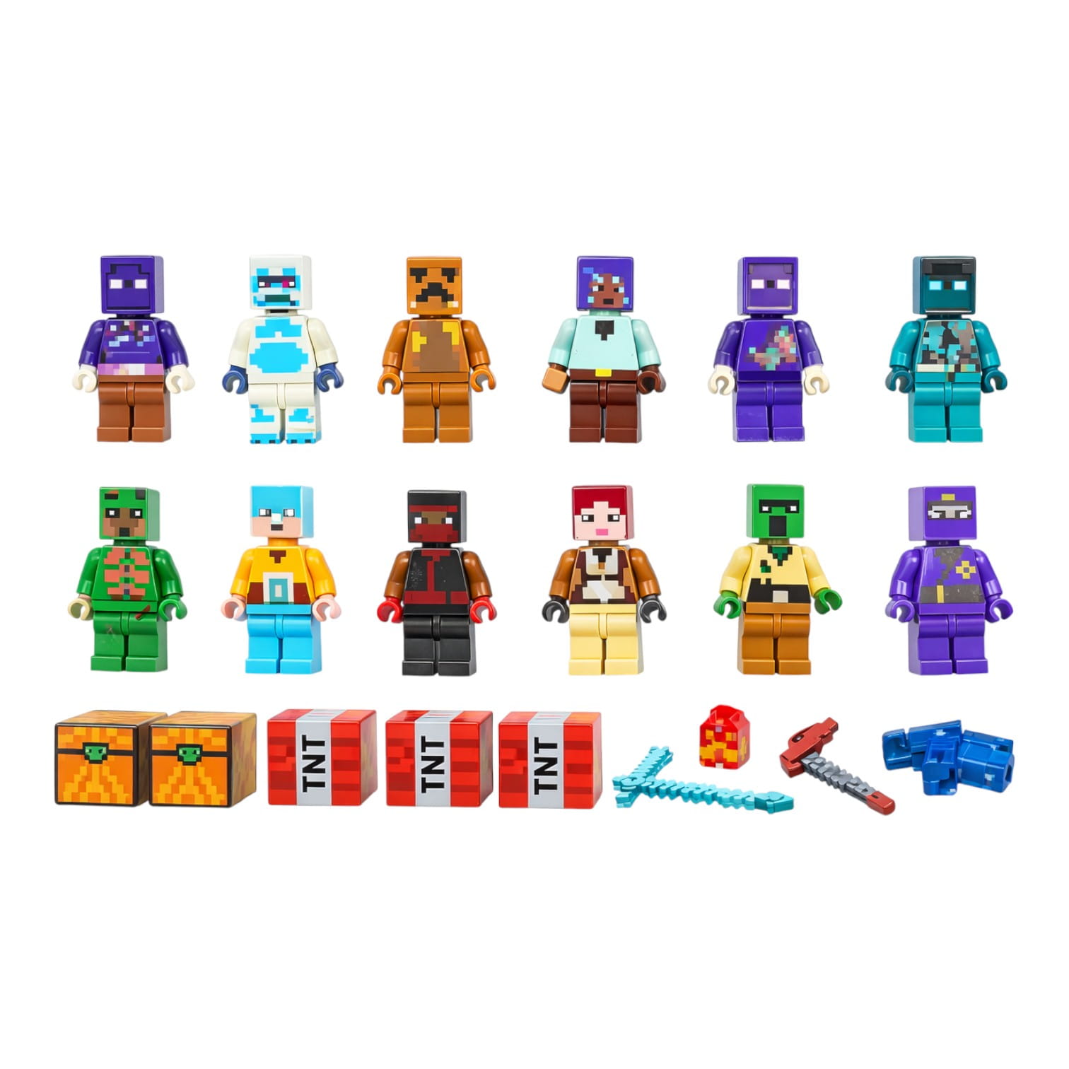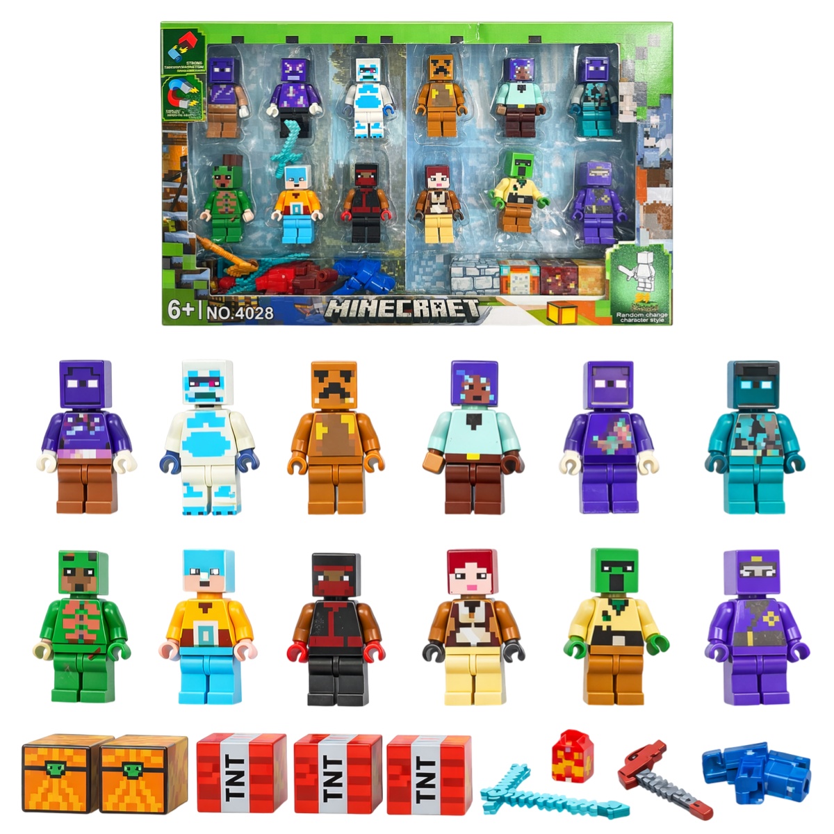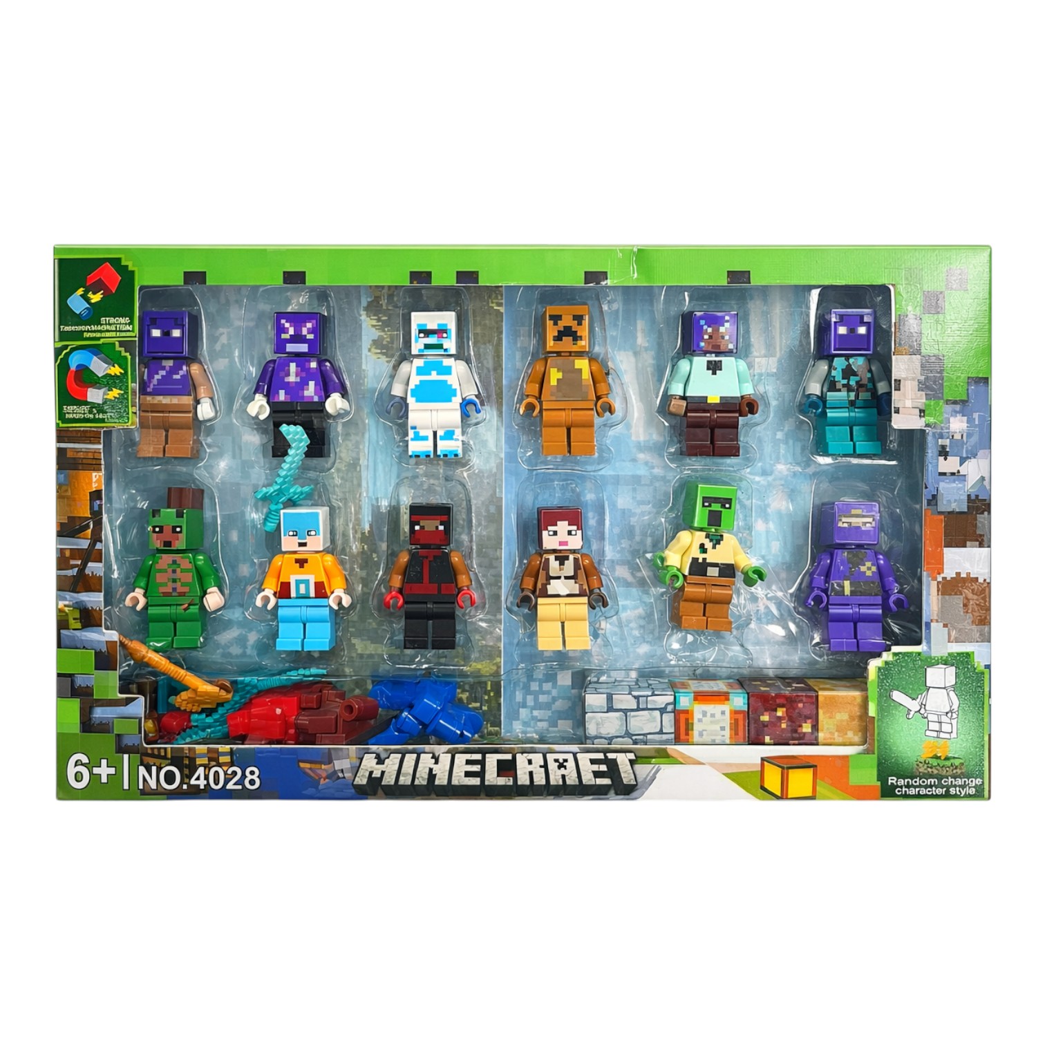 Zestaw Figurek Minecraft 12 Sztuk + 4 Klocki Magnetyczne + Akcesoria