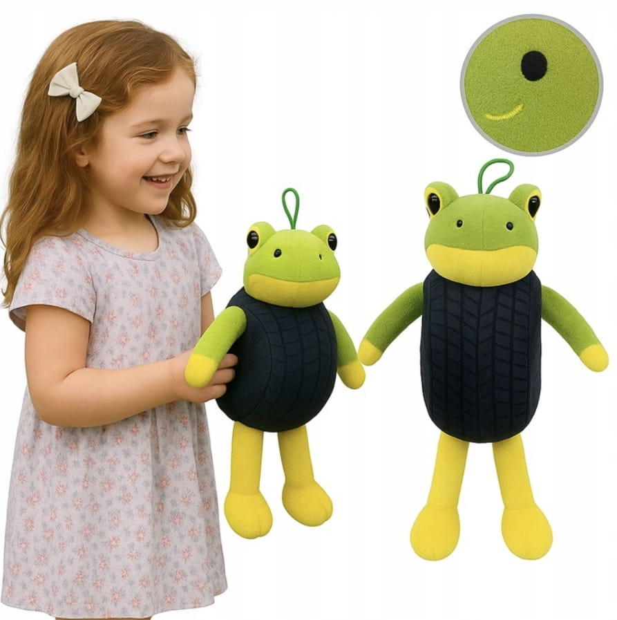 Unikalny Design: Zielona żaba uwięziona w czarnej oponie to widok, który od razu wywołuje uśmiech. To najbardziej oryginalny pluszak w kolekcji.
