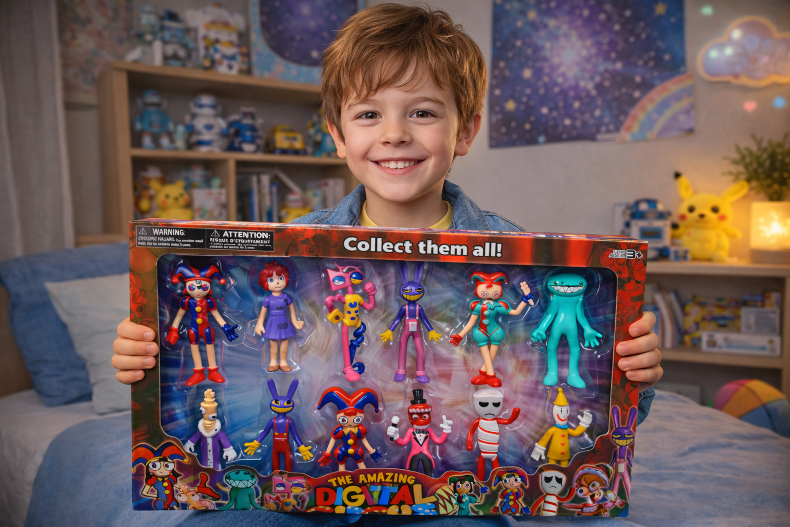 Zestaw The Amazing Digital Circus to wyjątkowa kolekcja figurek inspirowana popularną stylistyką cyfrowego świata animacji. Produkt łączy w sobie dynamiczny design, wyraziste kolory oraz dużą różnorodność postaci, co czyni go doskonałym wyborem zarówno do zabawy, jak i do kolekcjonowania.