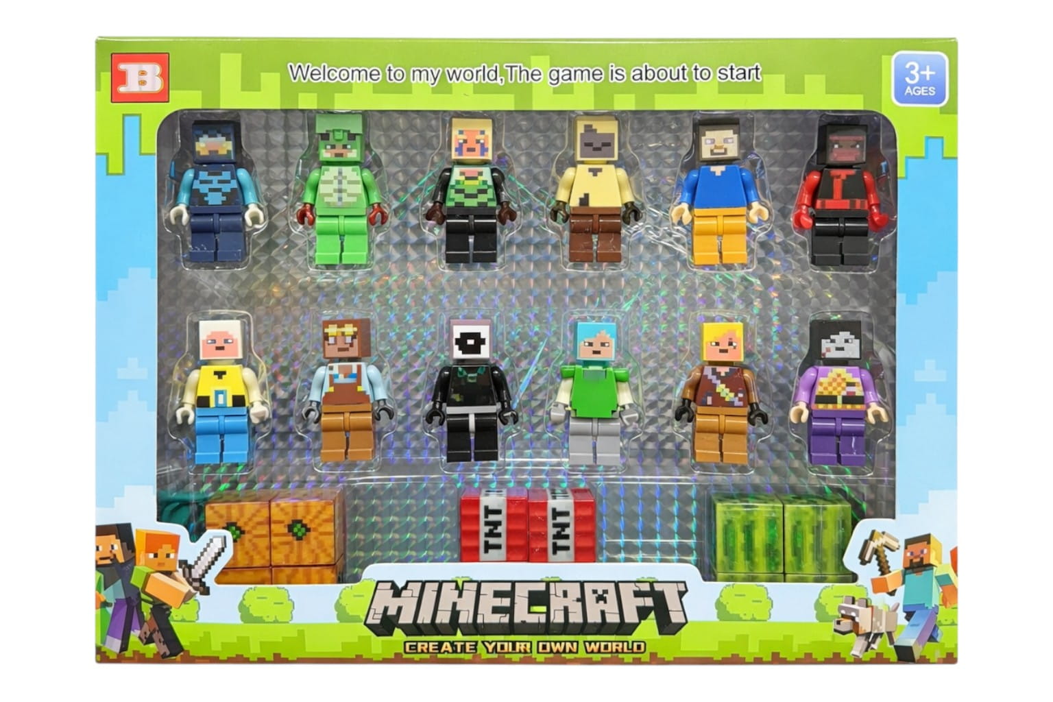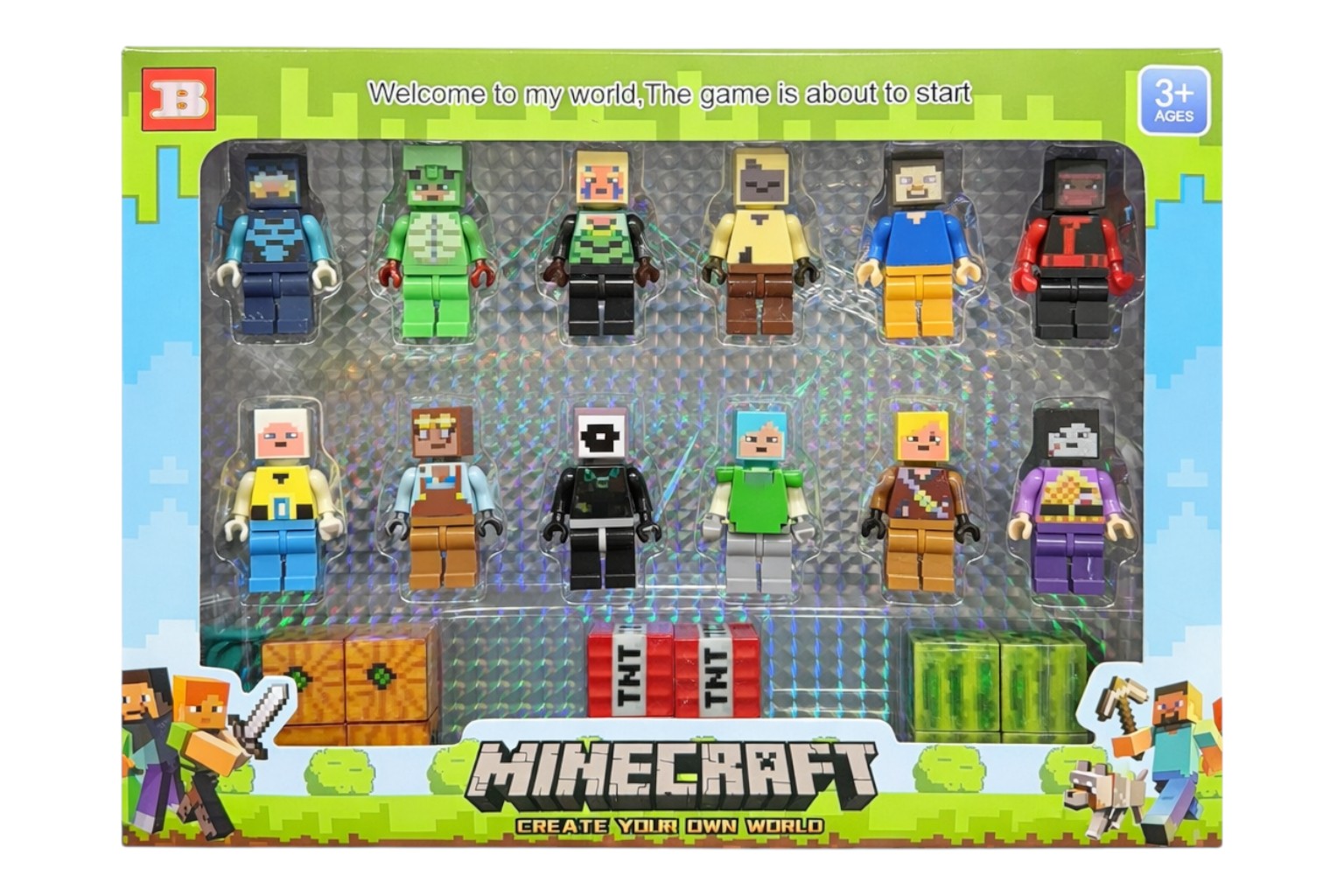 Zestaw Figurek Minecraft 12 szt. + 12 Klocków Magnetycznych
