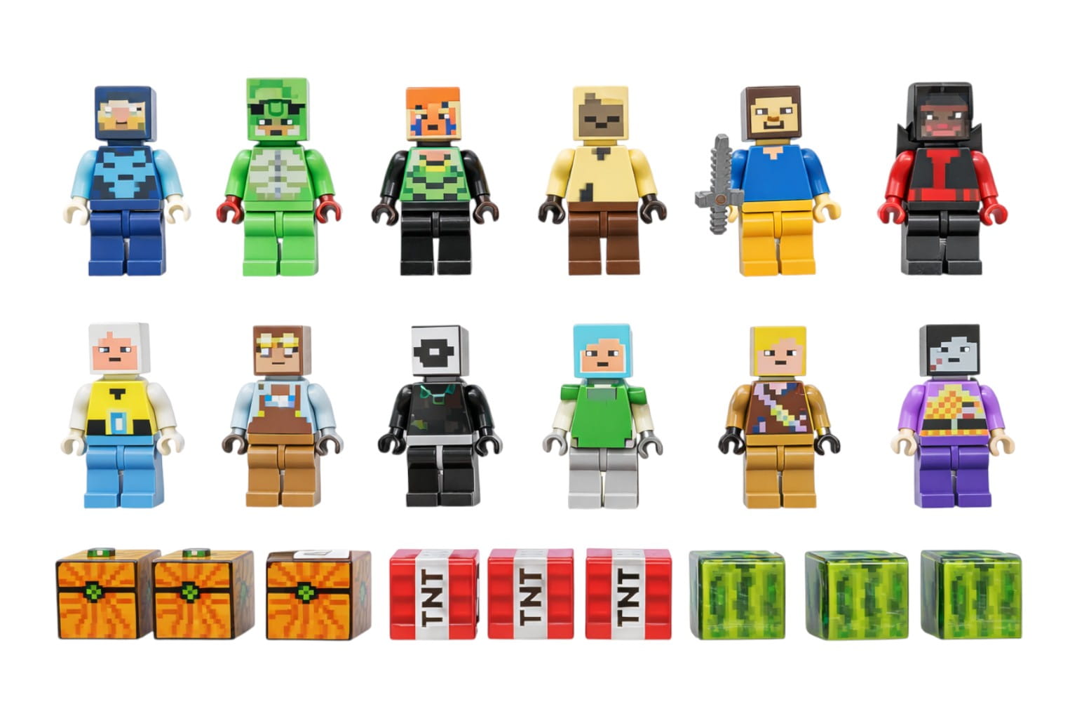 AKCESORIA W ZESTAWIE: Bohaterowie nie są bezbronni – w pudełku znajdziesz broń i narzędzia niezbędne do przetrwania w kanciastym świecie.
