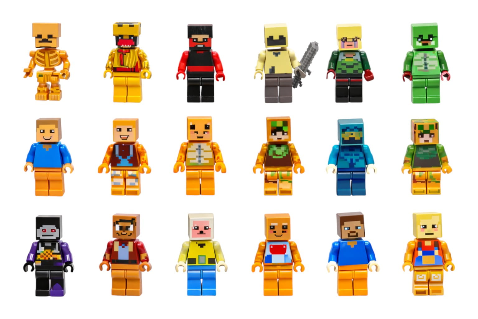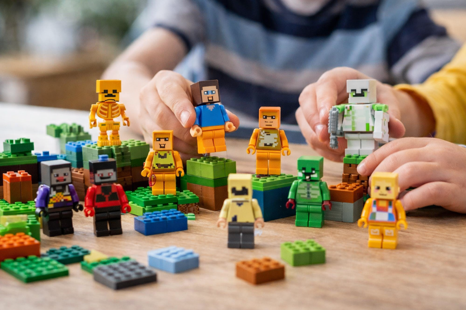 Nie musisz kupować pojedynczych saszetek w ciemno. W tym zestawie otrzymujesz natychmiast całą armię bohaterów. Znajdziesz tu postacie takie jak Steve, Alex, a także rzadkie skiny oraz przeciwników: Szkielety, Zombie i Creepery. Co najważniejsze, figurki są w pełni kompatybilne z klockami popularnych marek. Jeśli Twoje dziecko posiada już inne zestawy konstrukcyjne, te figurki będą do nich idealnie pasować, pozwalając na tworzenie ogromnych makiet.
